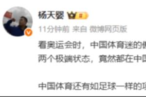 楊天嬰:“看奧運(yùn)會時,中國體育迷的傲視天下,看足球比賽時,中國體育迷的卑微可憐,這兩個極端狀態(tài),竟然都在中國體育當(dāng)中集中存在。