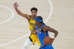 雷霆首戰(zhàn)被步行者完成15分翻盤后,第二場比賽吸取教訓(xùn),球隊(duì)從第二節(jié)開始就牢牢壓制對手,始終保持兩位數(shù)分差,最終主場123-107獲勝,扳平大比分。核心亞歷山大21中11,轟下34分8助攻5籃板。前兩戰(zhàn),亞歷山大一共拿到72分,一舉打破艾弗森在2001年總決賽前兩場的得分紀(jì)錄。杰倫·威廉姆斯19分5籃板5助攻,切特·霍姆格倫15分6籃板。替補(bǔ)出戰(zhàn)的卡魯索三分球8中4,貢獻(xiàn)20分。阿隆·維金斯三分球8中5得到18分。從實(shí)力上看,雷霆優(yōu)勢明顯,球隊(duì)也渴望在客場拿到勝利奪回主場優(yōu)勢。