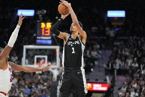 問題顯而易見:籃下沒有空間。索漢無法投籃(職業(yè)生涯三分命中率29%),其他外線球員也好不到哪里去。因此,盡管文班亞馬在籃下進攻是更高效的選擇,但為了讓進攻順暢,他不得不承擔(dān)更多的外線投射角色。馬刺隊增加了進攻創(chuàng)造者,但卻沒有增加空間來為文班亞馬拉開突破路線。