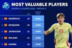 1、熱蘇斯-羅德里格斯:西班牙,3000萬(wàn)歐,19歲