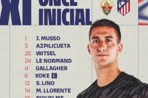 馬競首發(fā):穆索、阿斯皮利奎塔、維特塞爾、勒諾爾芒、加拉格爾、科克、利諾、略倫特、里克爾梅、索爾洛特、科雷亞