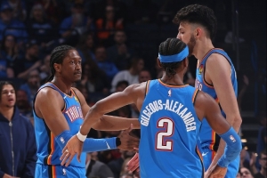 據(jù)統(tǒng)計(jì),他們3個(gè)是NBA三分時(shí)代以來在總決賽同時(shí)砍下20+第二年輕的三人組(SGA26歲、杰倫威23歲、切特22歲),最年輕的是2012年的杜蘭特、威少、哈登(KD23歲、威少22歲、哈登22歲)。