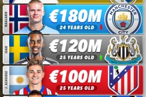 體育資訊6月13日訊 2024-25賽季結(jié)束,Score 90更新了前鋒的身價(jià)排行,皇馬攻擊手姆巴佩以及曼城的哈蘭德都是1.8億歐元。