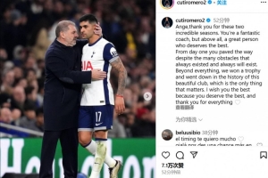 體育資訊6月13日訊 不久前,熱刺后衛(wèi)羅梅羅更新了社交媒體,祝福了下課的波斯特科格魯。