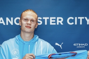 曼城曬出了哈蘭德當(dāng)初的加盟照,寫道:“2022年的今天,我們簽下了從小就是藍(lán)月亮球迷的哈蘭德。”