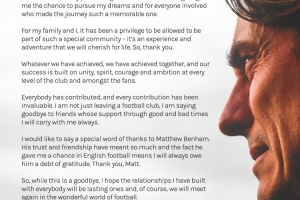 每個人都做出了貢獻,每一份貢獻都彌足珍貴。我離開的不僅是一家足球俱樂部,我在告別的是那些在順境與逆境中始終支持我的朋友,他們的支持我將永遠銘記在心。