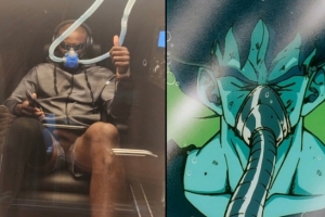 照片中,杰倫-布朗戴著面罩,沖鏡頭伸出了大拇指。