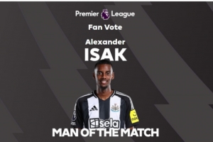 此役伊薩克2射1傳,參與全部3粒進(jìn)球,英超官方宣布,經(jīng)過(guò)球迷的投票,伊薩克當(dāng)選本場(chǎng)比賽最佳球員。