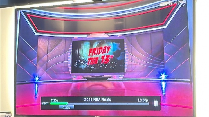 在比賽期間,有美國(guó)網(wǎng)友反饋ESPN的轉(zhuǎn)播突然黑屏了,還插了一個(gè)《十三號(hào)星期五》的圖片。