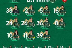 上海海港替補(bǔ):12-陳威、2-李昂、4-王燊超、13-魏震、40-吾米提江、36-阿布拉汗、47-蒯紀(jì)聞、52-孟敬朝、11-呂文君、14-李圣龍、17-沈子貴、49-李新翔
