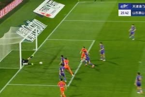 比賽第26分鐘,泰山左路傳中,卡扎伊什維利近距離頭球攻門被閆炳良神奇撲出。起身后閆炳良對(duì)隊(duì)友非常不滿,示意隊(duì)友沒(méi)有盯住人。