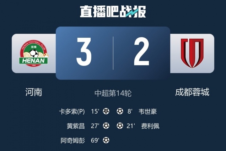體育資訊06月14日訊 北京時(shí)間19:35,中超第14輪,成都蓉城客場(chǎng)2-3不敵河南。