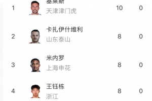 基萊斯在對(duì)陣泰山隊(duì)的比賽中打入一球,以10球數(shù)據(jù)繼續(xù)領(lǐng)跑射手榜。目前射手榜TOP5如下: