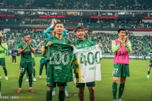 國安本輪聯(lián)賽2-1擊敗亞泰,本場比賽,國安為張稀哲以及李磊舉辦紀(jì)念儀式,前者獲贈400戰(zhàn)紀(jì)念球衣,后者獲贈200戰(zhàn)紀(jì)念球衣。
