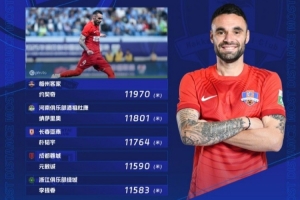 河南外援納薩里奧、長春亞泰的樸韜宇、成都蓉城的元敏誠、浙江的李提香均上榜,榜單詳情見上圖。