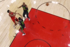 阿巴基搶球時蹭到普理查德鞋上,手指破了;又打了一回合,造成地板上到處是血跡...