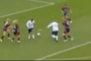 魯尼為英格蘭隊首開記錄,他在禁區(qū)內機智捕捉到機會,面對對方球員(含女足)的防守,果斷推射破門。