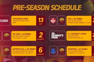 隨后,羅馬將前往英格蘭,于8月2日至8日在伯頓特倫特河畔的圣喬治公園進行集訓。在這段訓練期間,已安排一場對陣維拉的熱身賽,比賽定于8月6日在沃爾索爾的貝斯科特球場舉行。