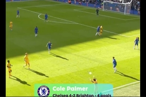 24-25賽季英超第6輪,切爾西主場(chǎng)4-2擊敗布萊頓,帕爾默在比賽上半場(chǎng)就打進(jìn)了4球。