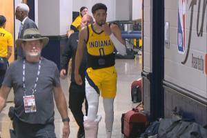 體育資訊06月17日訊 總決天王山,哈利伯頓在上半場一度回到更衣室。