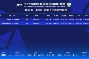 體育資訊6月17日訊 中足聯(lián)公布了中超第6輪補賽的裁判人員安排名單,沈寅豪將執(zhí)法國安vs西海岸,金京元將執(zhí)法河南vs海港。