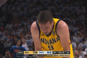 體育資訊06月17日訊 總決賽天王山之戰(zhàn),三節(jié)結(jié)束,步行者79-87落后雷霆8分。