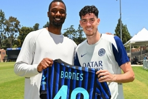 體育資訊6月17日訊 目前國際米蘭正在積極備戰(zhàn)世俱杯首輪的比賽,今日NBA馬刺球星巴恩斯造訪國米訓(xùn)練營,國米后衛(wèi)巴斯托尼向其贈(zèng)予40號(hào)球衣,并合影留念。