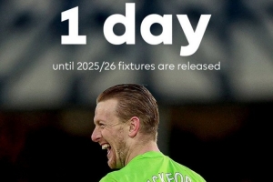 英超官推曬出海報,皮克福德為主角,宣布北京時間明天下午4點將公布新賽季賽程。