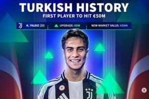 據(jù)德轉(zhuǎn)統(tǒng)計,本次身價更新后伊爾迪茲成為歷史上身價最高的土耳其球員,歷史上首次有土耳其球員德轉(zhuǎn)身價達到5000萬歐。