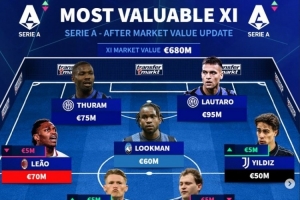 體育資訊6月17日訊 意甲球員德轉(zhuǎn)身價(jià)今日更新,德轉(zhuǎn)列出了意甲身價(jià)最貴陣,勞塔羅、小圖拉姆搭檔鋒線(xiàn),麥克托米奈、伊爾迪茲、萊奧在列。