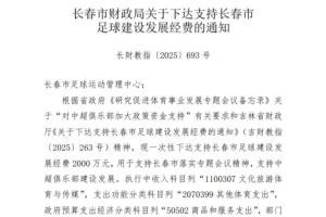 長春市財政局關(guān)于下達(dá)支持長春市足球建設(shè)發(fā)展經(jīng)費的通知