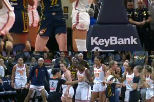 裁判回看錄像后判罰克拉克技術(shù)犯規(guī)、瑪麗娜-馬布雷技術(shù)犯規(guī)、杰茜-謝爾登一級惡意犯規(guī)。