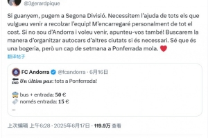 皮克社媒寫道:“如果我們贏了,就能升入西乙聯(lián)賽,我們需要所有想來支持球隊的人助我們一臂之力。所有費用我個人全包!就算你不是安道爾人,只要想來,也請報名!如果需要的話,我們會想辦法從其他城市組織大巴。我知道這很瘋狂,但周末去蓬費拉達玩一趟超酷的。??”