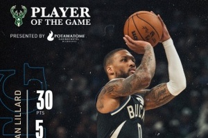 此役雄鹿球星利拉德攻防兩端表現(xiàn)非常高效,出場30分鐘19投13中,三分3中3、罰球1中1拿到全場最高30分外加5籃板4助攻4搶斷,正負(fù)值+27也是全場最高。