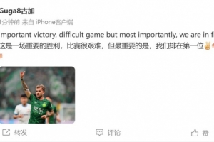 賽后,古加更新社媒慶祝球隊(duì)贏球,他配文寫道:這是一場(chǎng)重要的勝利,比賽很艱難,但最重要的是,我們排在第一位。