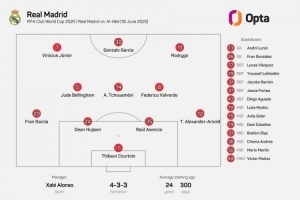 體育資訊6月19日訊 北京時(shí)間今天凌晨3點(diǎn),世俱杯小組賽首輪皇馬對(duì)陣?yán)诺眯略?,此役雙方首發(fā)已公布。