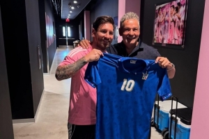 體育資訊6月19日訊 意大利足壇名宿巴喬更新社媒動態(tài),曬出與梅西的合照。