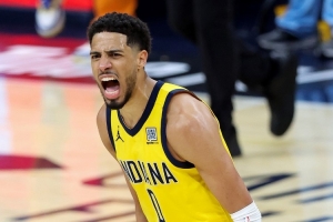 步行者主將哈利伯頓本場比賽帶傷出戰(zhàn),他在場作用明顯,在進(jìn)攻和組織上都有不錯發(fā)揮,帶隊扳平大比分。
