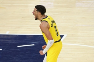本場,哈利伯頓出場22分52秒,12投5中(三分7中3),罰球1中1,拿到14分1籃板5助攻2搶斷,正負(fù)值+25是全場最高。