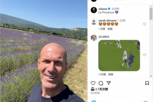 齊達內(nèi)社媒曬出在薰衣草田間的照片,他面帶微笑,配文:“普羅旺斯。”