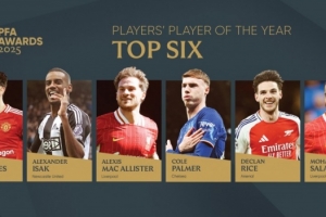 2024-25賽季PFA年度最佳球員六強名單已由會員投票產(chǎn)生,獲獎者將于8月19日在曼徹斯特舉行的第52屆PFA頒獎典禮上揭曉。