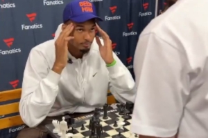 體育資訊6月22日訊 剛結(jié)束禪修之旅的文班亞馬已經(jīng)抵達紐約參加狂歡節(jié),他和100名球迷玩車輪戰(zhàn)下起了國際象棋。