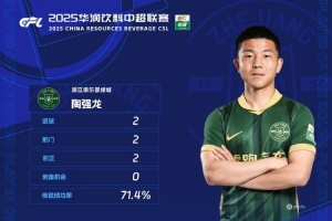 在2025華潤飲料中超聯(lián)賽第13輪中,浙江隊主場對陣河南俱樂部酒祖杜康。比賽第38分鐘,在球隊0比1落后的情況下,陶強龍接到弗蘭克的下底傳中包抄破門扳平比分;第44分鐘,陶強龍在禁區(qū)外送出直塞,弗蘭克用腳后跟做球,陶強龍跟上右腳抽射破網(wǎng),完成梅開二度。最終,本場比賽雙方2比2戰(zhàn)平。