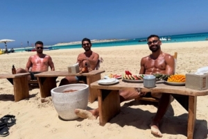 薩拉赫正在度假,他在社交媒體上曬出與朋友一起度假的照片,這位埃及前鋒在海邊享用沙灘水果餐。