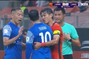 體育資訊06月22日訊 足協(xié)杯1/8決賽,上海海港vs上海申花。比賽第10分鐘,特謝拉被茹薩踢倒后非常不滿,朝裁判不斷抱怨,申花隊(duì)長吳曦和海港隊(duì)長王燊超都跑來勸他。