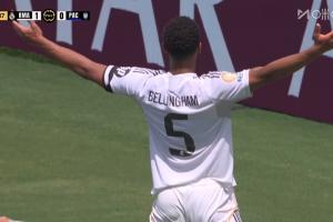 比賽第35分鐘,加西亞橫敲,貝林厄姆突入禁區(qū),左腳抽射破門!場上比分皇馬1-0帕丘卡。