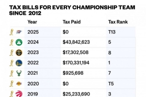 本賽季,雷霆沒(méi)有繳納奢侈稅。這樣雷霆就成為了自從2020年的湖人以來(lái)又一支奢侈稅為0的冠軍球隊(duì)。
