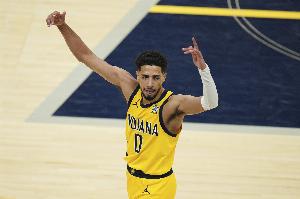 到了季后賽,哈利伯頓開始施展自己的魔法,多次在最后時刻用絕殺挽救球隊并一路殺到總決賽,共出戰(zhàn)23場比賽,場均33.5分鐘的時間里拿到17.3分5.3籃板8.6助攻1.3搶斷0.7蓋帽的數(shù)據(jù),三項命中率分別為46.3%、34%和82.8%。