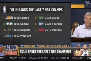 在播客節(jié)目中,名嘴Colin Cowherd給這七個(gè)總冠軍進(jìn)行排名,他給出的排名是: