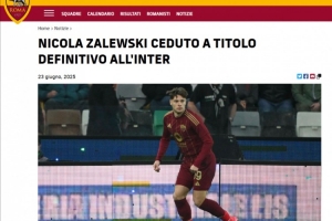 體育資訊6月24日訊 羅馬官方宣布,扎萊夫斯基永久性轉會加盟國米。